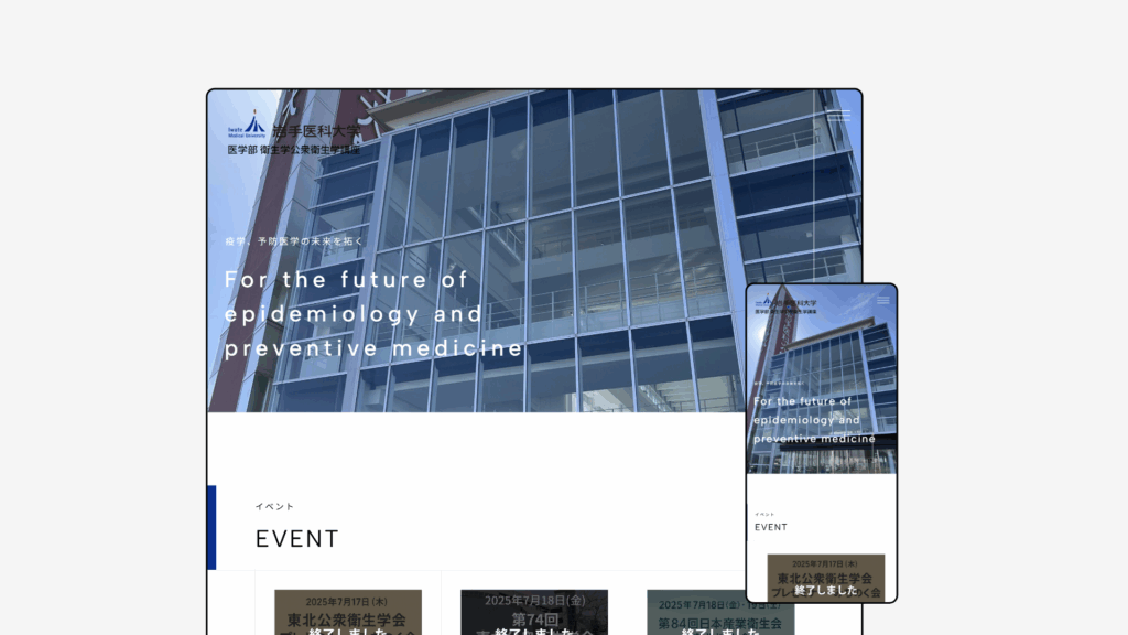 岩手医科大学 衛生学公衆衛生学講座様のWebサイトを、予算・納期に合わせてテンプレートを活用しながらリニューアルしました。