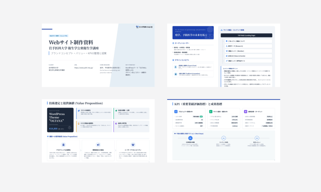 岩手医科大学 衛生学公衆衛生学講座様のリニューアルでは、高品質のテンプレートを活用しつつ、研究室サイトとして必要な情報構造を再設計しました。