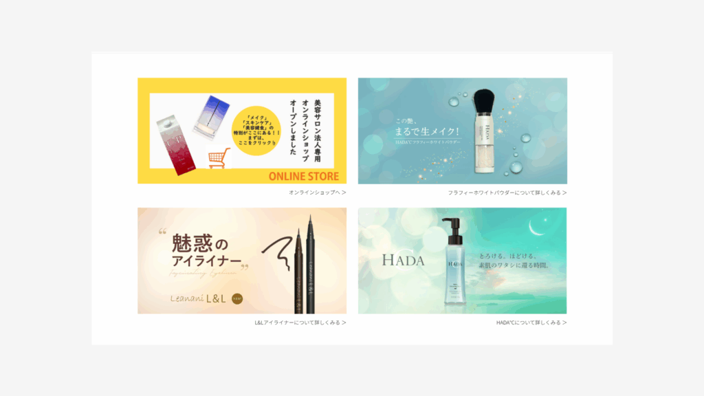株式会社レアナニ様の公式Webサイトは、メーカー情報とサロン情報が1つのTOPに混在し、