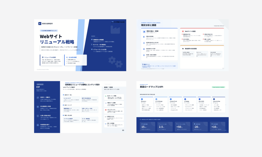 社員インタビューや一日の流れなどを段階的に加えることで、 働く人の空気感や価値観がより伝わるサイトへと発展させていくことが可能です。